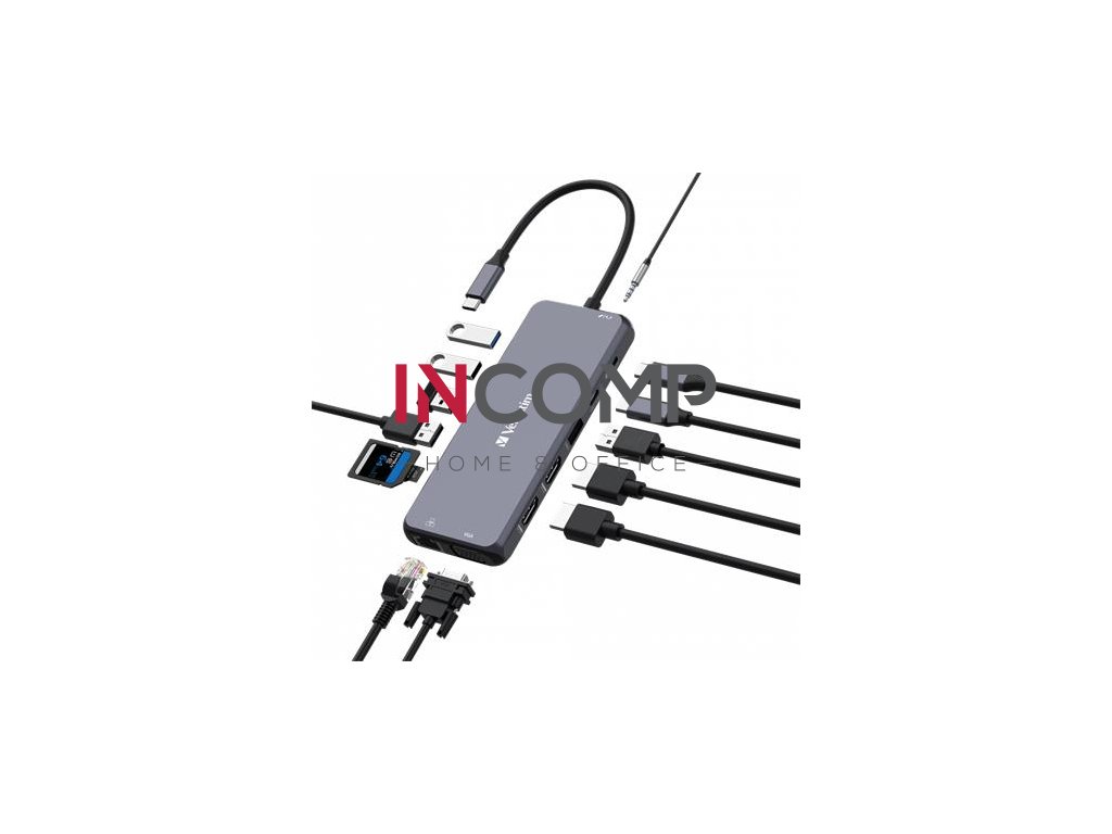 USB HUB, USB-C PD/2xHDMI/VGA/LAN/3xUSB/USB-C/2xUSB 2.0/SD/mSD/3,5jack VERBATIM