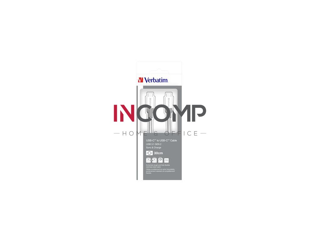 USB kábel, USB-C 3.1 - USB-C , 30 cm, VERBATIM, strieborná