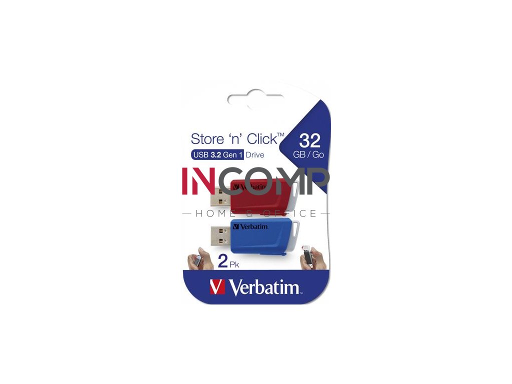 USB kľúč, 2 x 32GB, USB 3.2, 80/25MB/sec, VERBATIM "Store n Click", červená/modrá