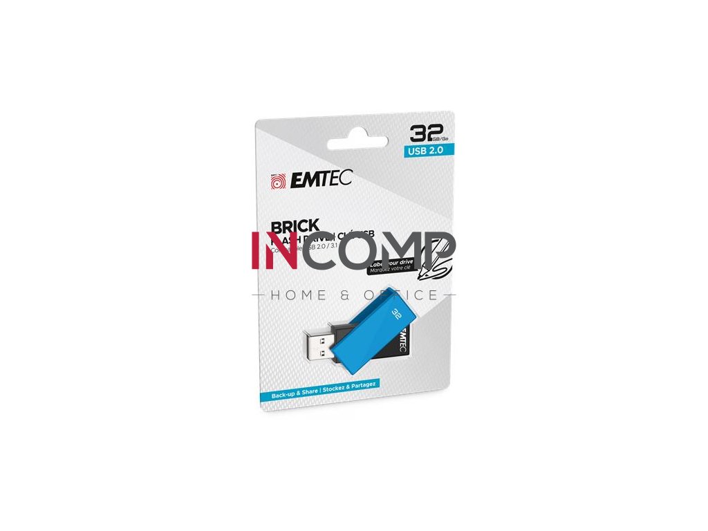 USB kľúč, 32GB, USB 2.0, EMTEC "C350 Brick", modrá