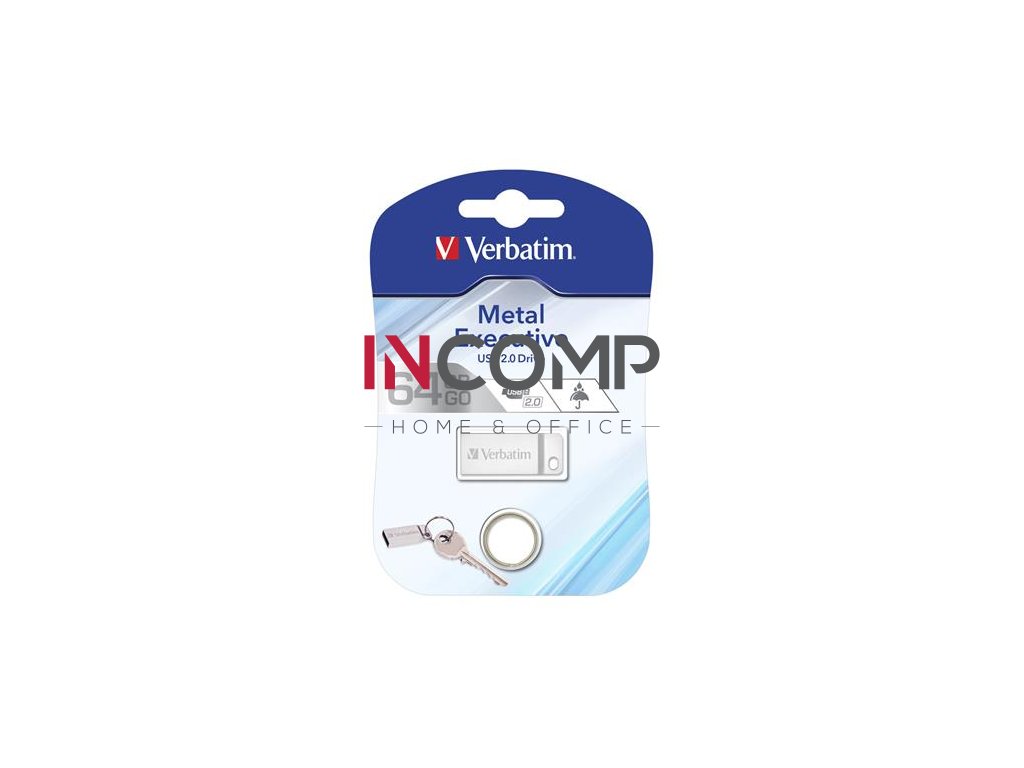 USB kľúč, 64GB, USB 2.0, VERBATIM "Executive Metal", strieborná