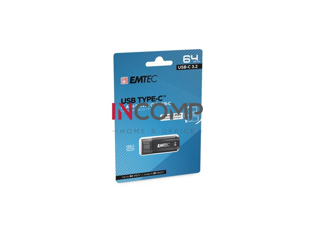 USB kľúč, 64GB, USB-C 3.2, EMTEC "D400 Type-C", čierna