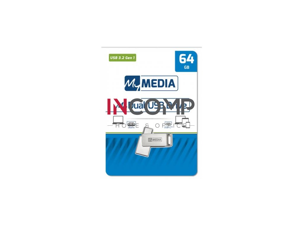 USB kľúč, 64GB, USB 3.2 Gen1+ USB-C, hliníkový kryt, MYMEDIA "Dual" (by VERBATIM)
