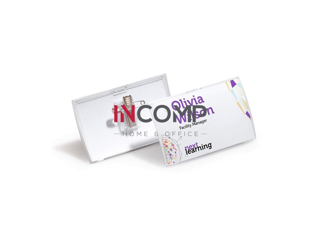 Visačka vyrobená z polypropylénového materiálu -S kombi klipom, možno pripevniť alebo pripnúť na oblečenie -Elegantný dizajn pre použitie v širokej škále oblastí, napr. na konferenciách, veľtrhoch alebo seminároch -Unikátny zaklapávací mechanizmus pre jednoduchú výmenu vložiek
