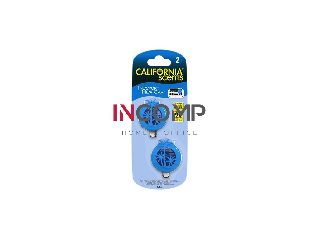 California Scents Mini Diffuser - Newport New Car s vôňou "Nového auta" rozvonia interiér vášho auta až na 90 dní. Difúzor je vhodný na umiestenie do väčšiny mriežok výduchov vetrania vozidiel.