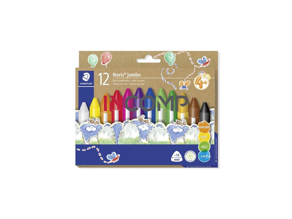 Noris® jumbo - Produkty, ktoré rastú s dieťaťom. Rad Noris jumbo umožňuje malým deťom objavovať vlastnú kreativitu. Tento produktový rad je hravé objavovanie, jednoduchá manipulácia, príp synonymom pre ekologické a bezpečné produkty (EXPLORE - EASY - ECO - SAFE). - hrubá voskovka s ergonomickým trojhranným dizajnom - ideálna pre malé ručičky a prvé kresby aj na dlhšiu dobu - žiarivé farby, ktoré umocňujú úspech malých umelcov - vhodná na rôzne techniky kreslenia - poťah papiera pre hygienickú manipuláciu, ktorá môže byť označené menom - priemer: 14 mm