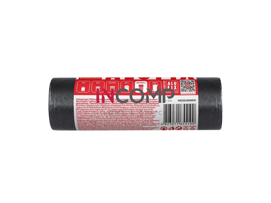 Vrecia na odpadky, 110 l , 10 ks, 70x110 cm, 25 µ, ALUFIX, čierna