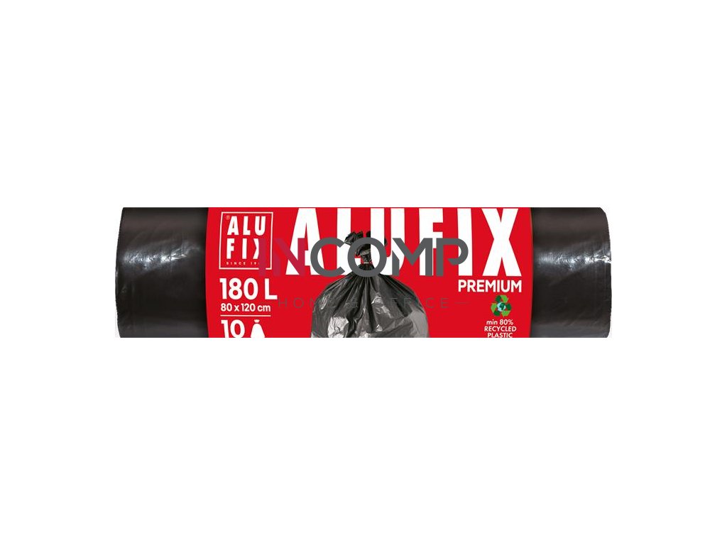 Vrecia na odpadky, 180 l, 10 ks, 80x120 cm, 45 µ, ALUFIX, čierna
