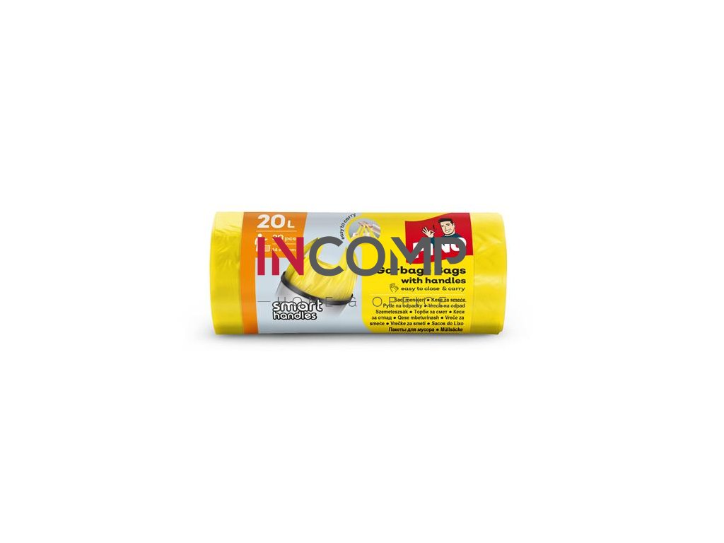 Vrecia na odpadky, s uškom, 20 l, 30 ks, 44x49 cm, 7 µ, FINO "Smart handles", žltá