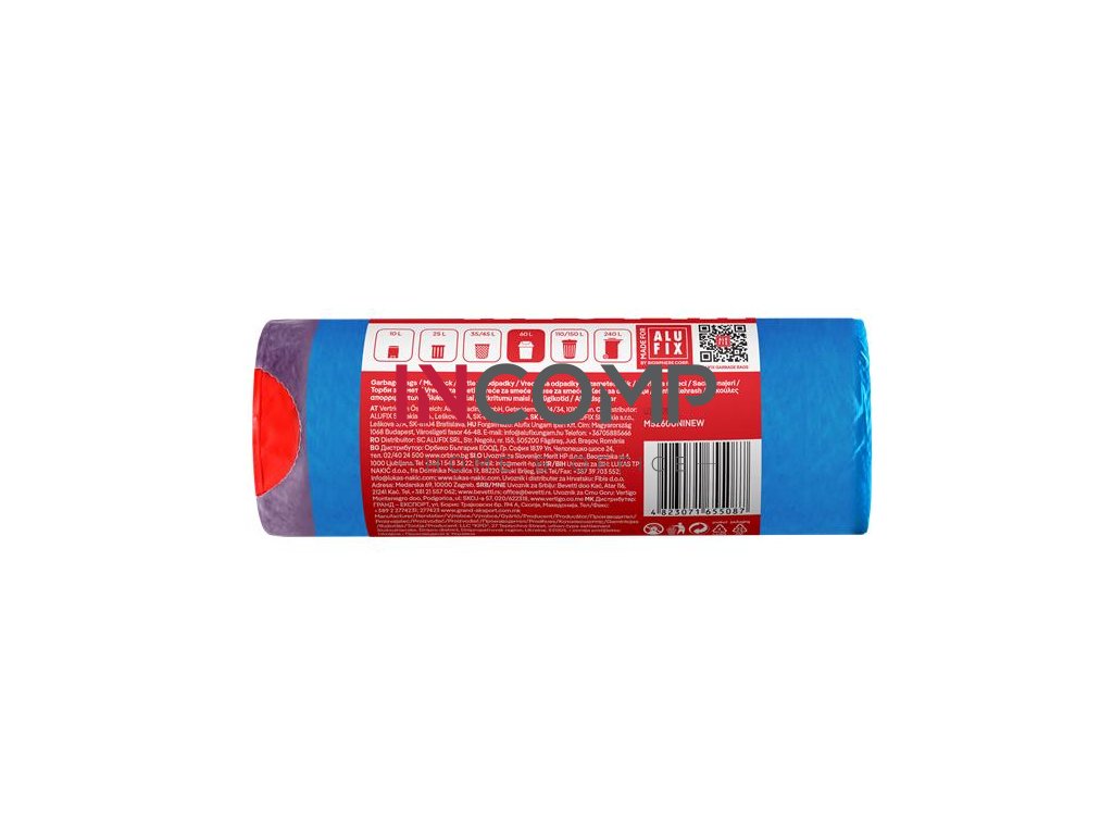 Vrecia na odpadky, zaťahovacie, 60 l, 15 ks, 64x71 cm, 26 µ, ALUFIX, modrá