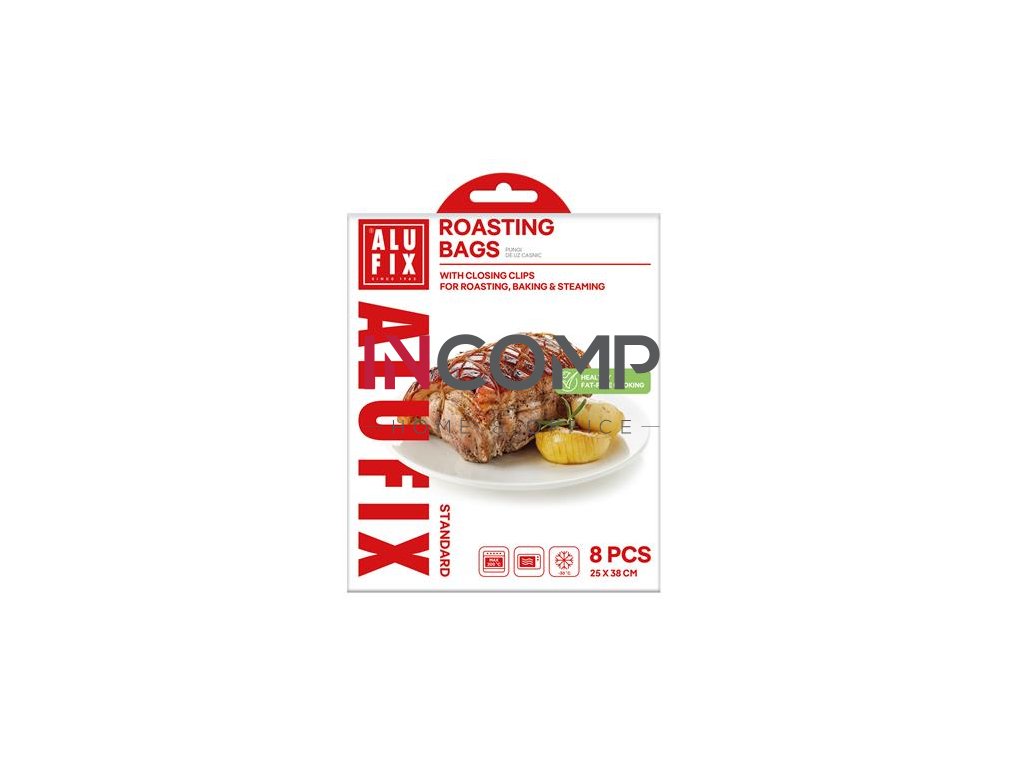 fólia na pečenie v tvare vrecka slúži na pečenie a dusenie všetkých druhov mäsa, zemiakov a zeleniny