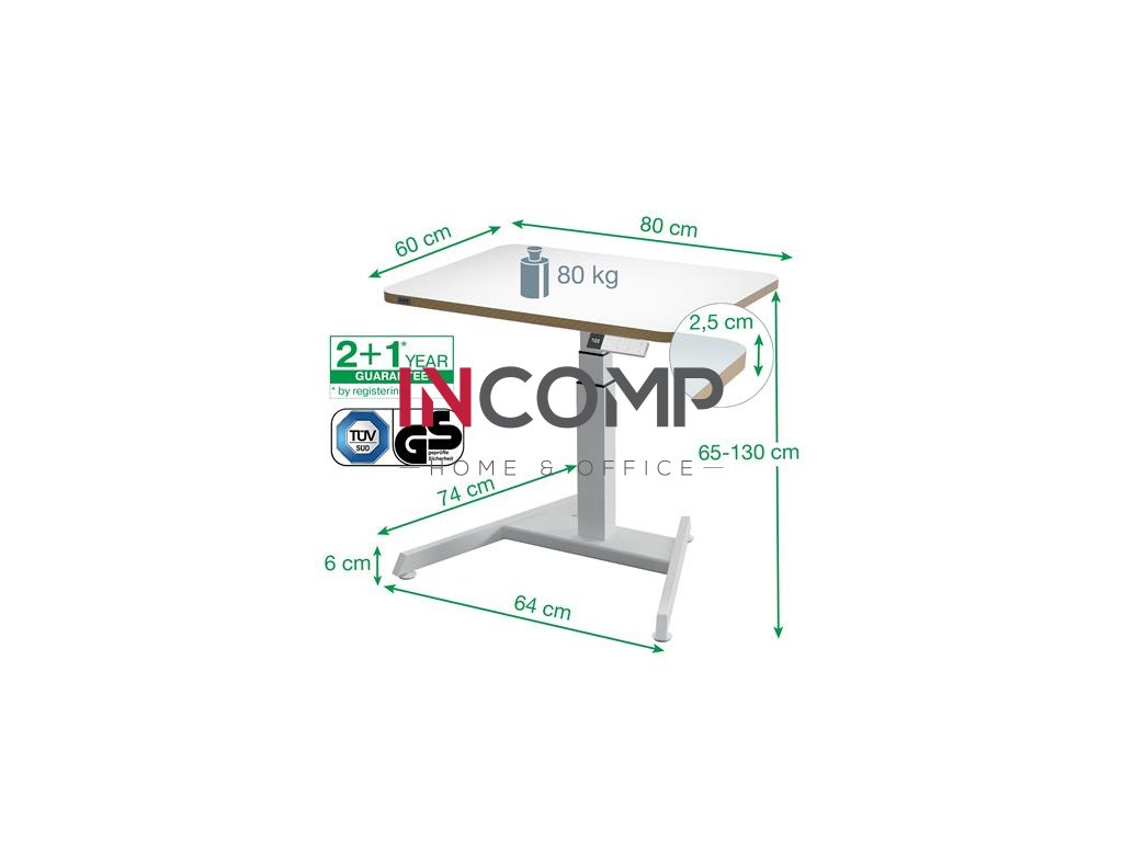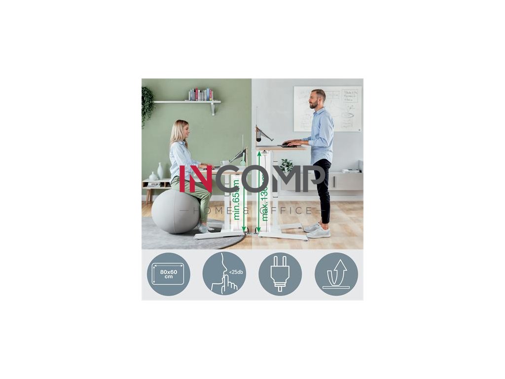 Elektrické nastavenie výšky v rozmedzí 65–130 cm pre všetky vaše potreby, motor na plynulé a tiché (<25 dB) nastavovanie, ochrana proti prehriatiu a funkcia proti kolízii