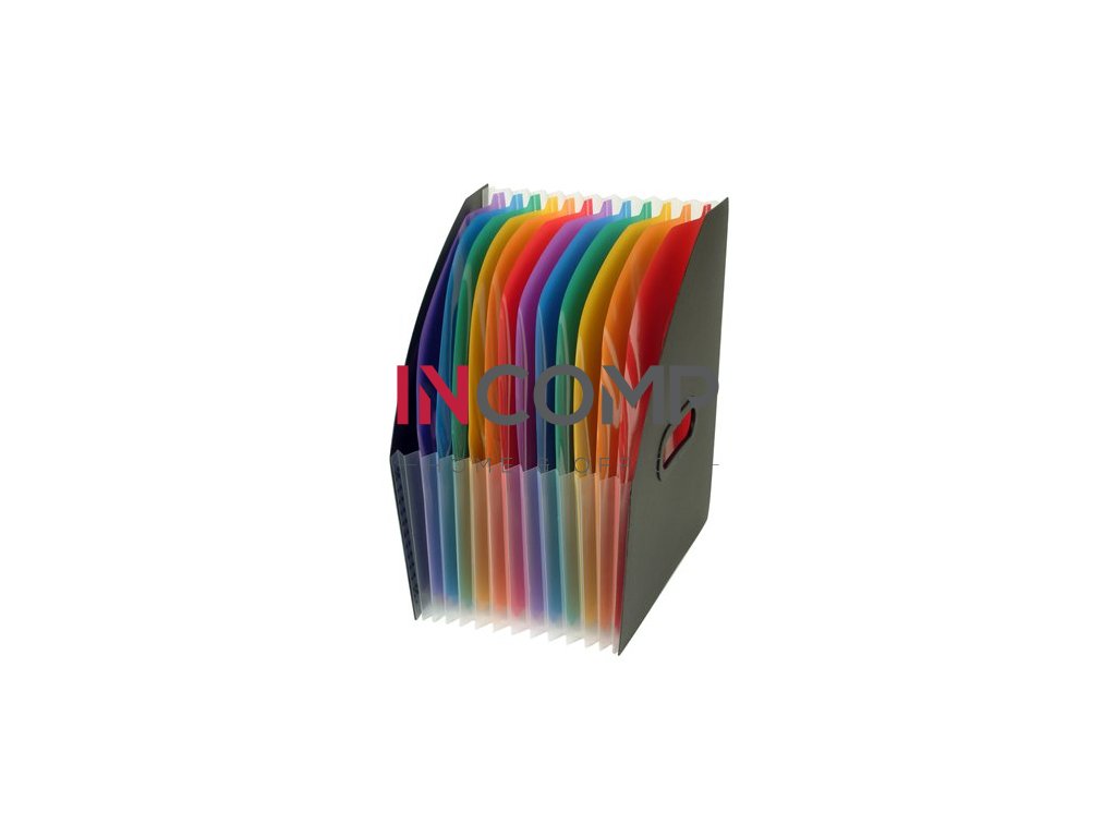 Zakladač, harmonikový, PP, 12 diely, VIQUEL, "Rainbow Class", čierny