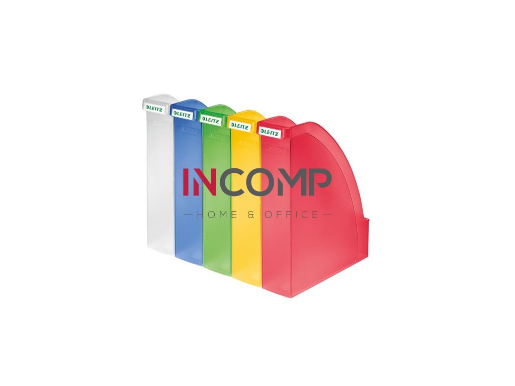 Veľmi pevný stojan na časopisy prémiovej kvality, ktorý je súčasťou uceleného systému radu plastových doplnkov Leitz Plus,