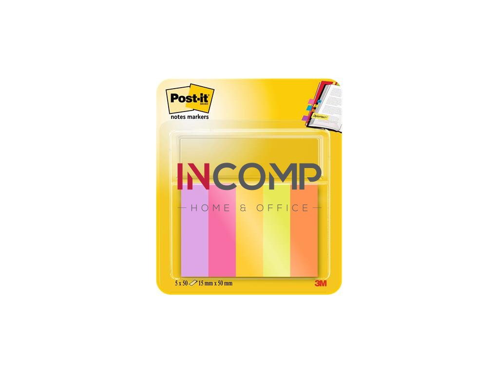Záložka, papierová, 5x50 listov, 15x50 mm, 3M POSTIT, "Energetic", rôzne farby
