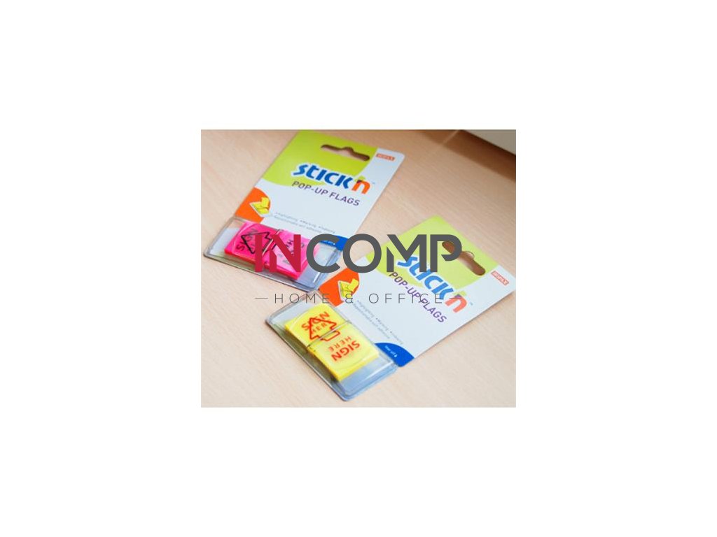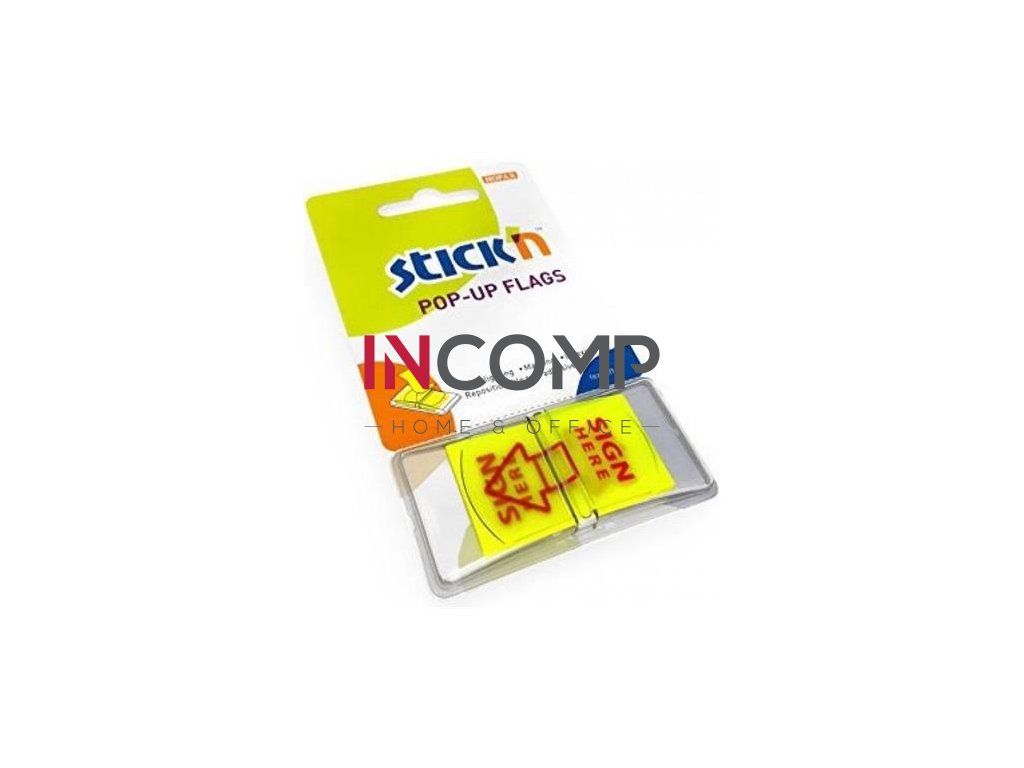 Záložky, 50 listov, 45x25 mm, STICK N „Sign Here“, podpis, neónová žltá