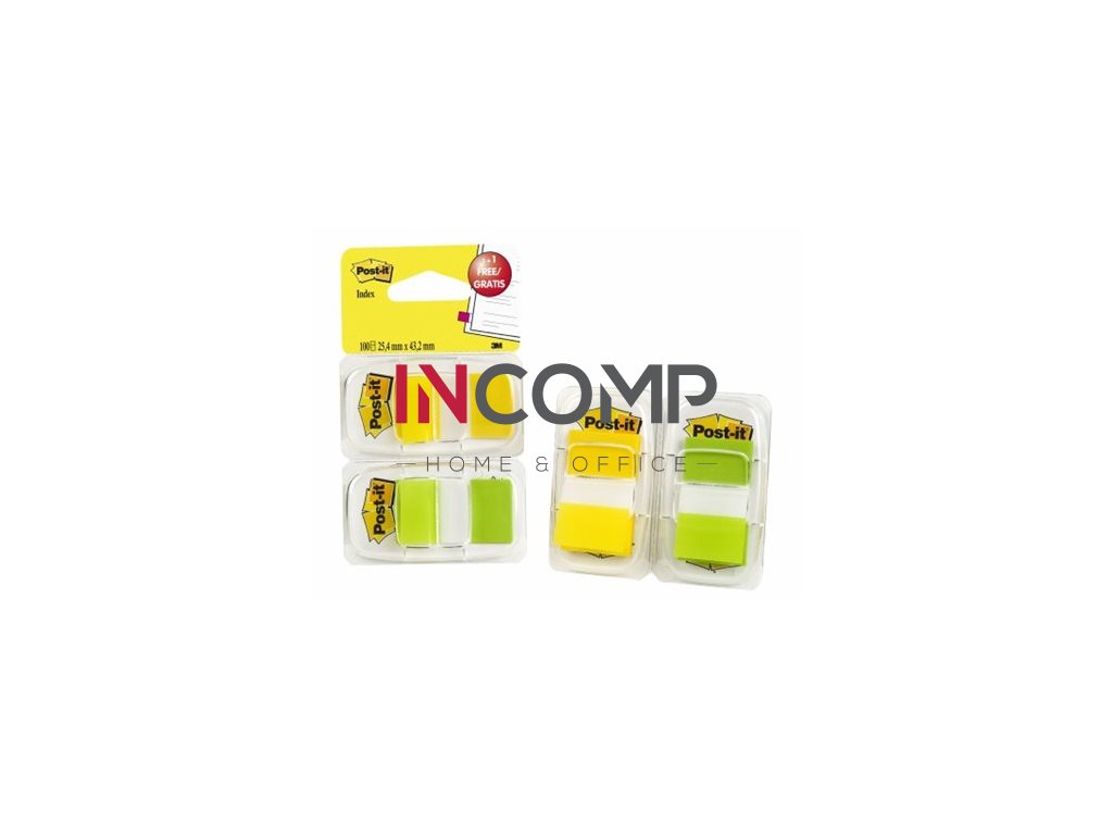 Záložky, plastové, 2x50 listov, 25x43 mm, 3M POSTIT, zelené a žlté