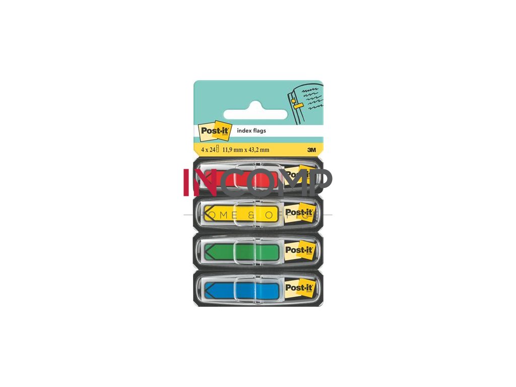 Záložky, plastové, 4x24 záložiek, 11,9x43,2 mm, v tvare šípky, 3M POSTIT, mix