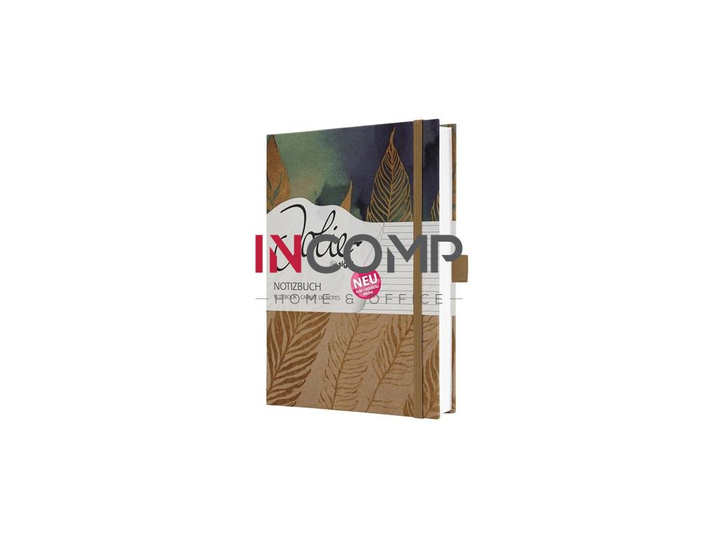 - výborná kvalita -pevná väzba so šitým chrbtom -uzatváranie pomocou gumičky -pútko na pero na boku -vnútorné archivovacie vrecko -záložková stuha -biely papier s gramážou 100 g/m² -70 % papiera je certifikovaných podľa FSC® -rozmery: 152 x 203 x 19 mm -vegánsky produkt