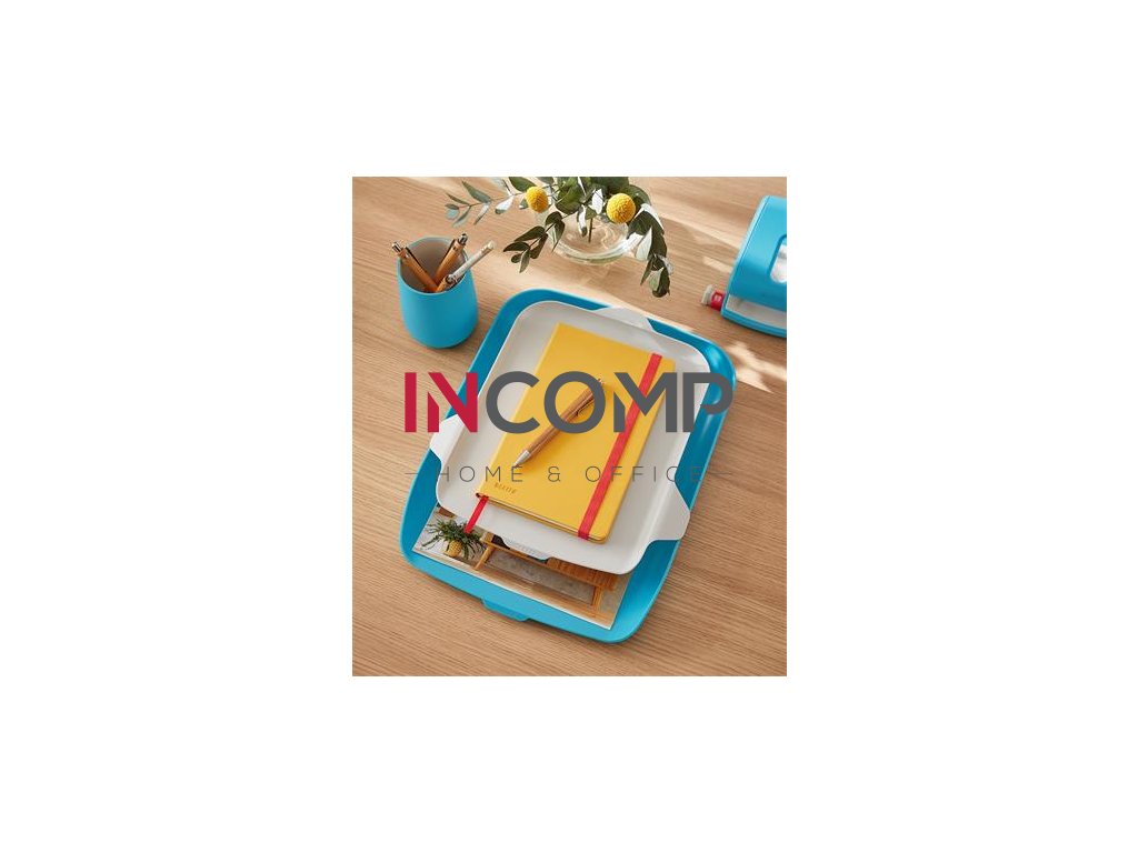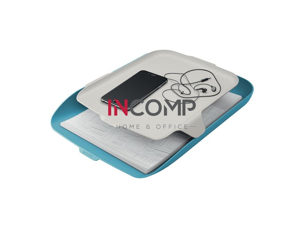 Zásobník na dokumenty s organizérom, plastový, LEITZ "Cosy", pokojná modrá