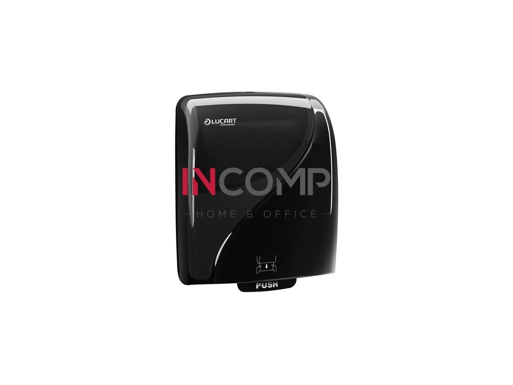 Zásobník na papierové utierky, 381x290x223 mm, LUCART, "Identity Hands 2.0", čierny-priehľadný