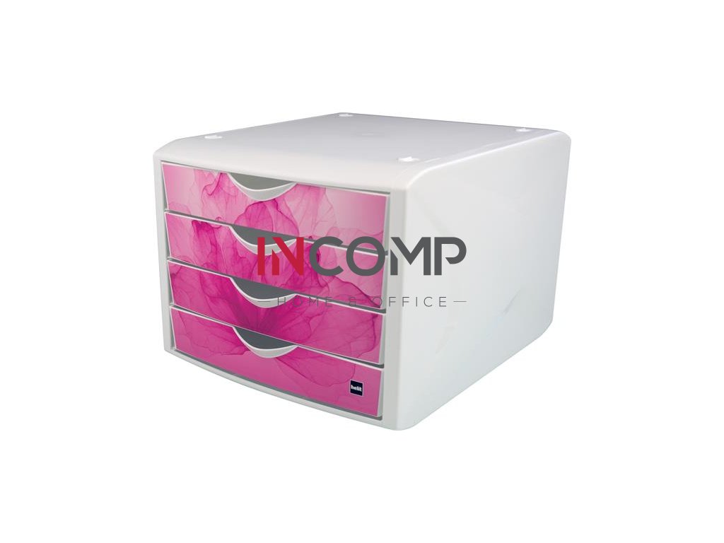 Zásuvkový box, plastový, 4 zásuvky, HELIT "Chameleon", ružová