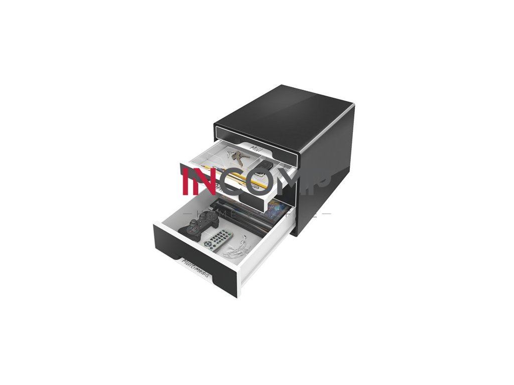 Zásuvkový box, plastový, 4 zásuvky, LEITZ "Cube", čierny