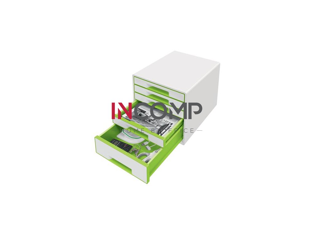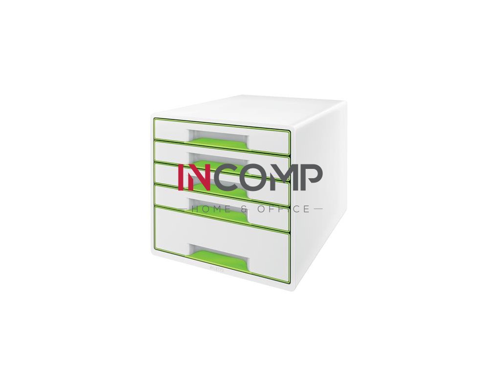 Zásuvkový box, plastový, 5 zásuviek, LEITZ "Wow Cube", biela/zelená