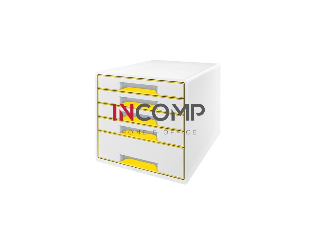 Zásuvkový box, plastový, 5 zásuviek, LEITZ "Wow Cube", biela/žltá