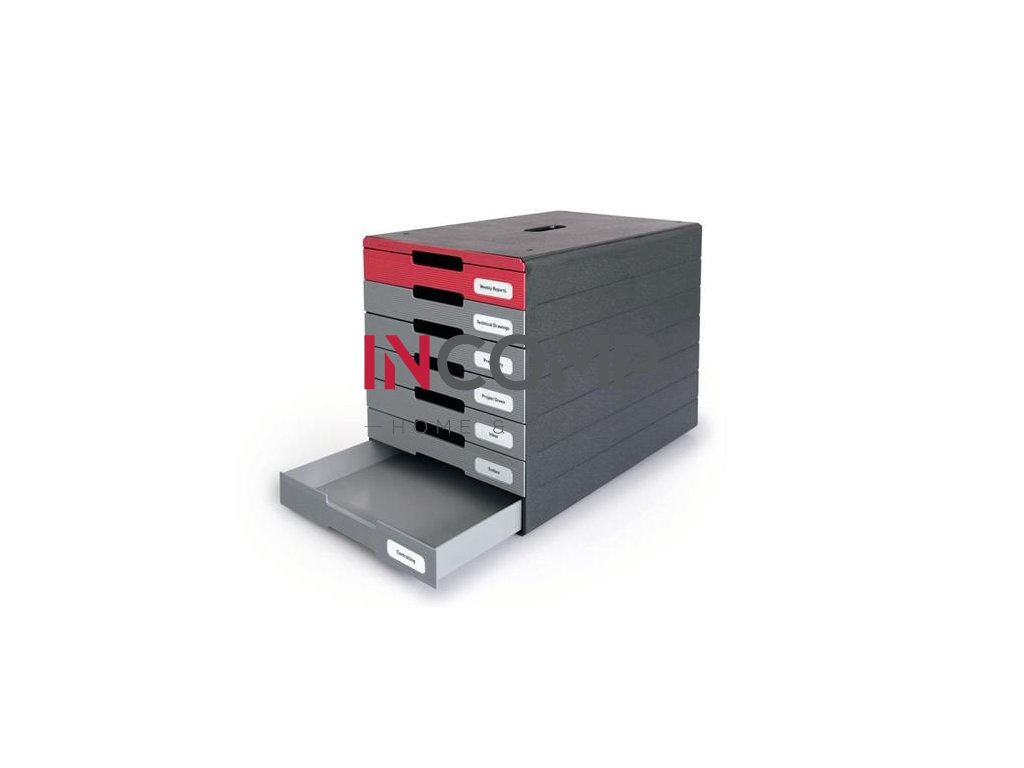 Zásuvkový box so 7 otvorenými zásuvkami a vysúvacím predným panelom.