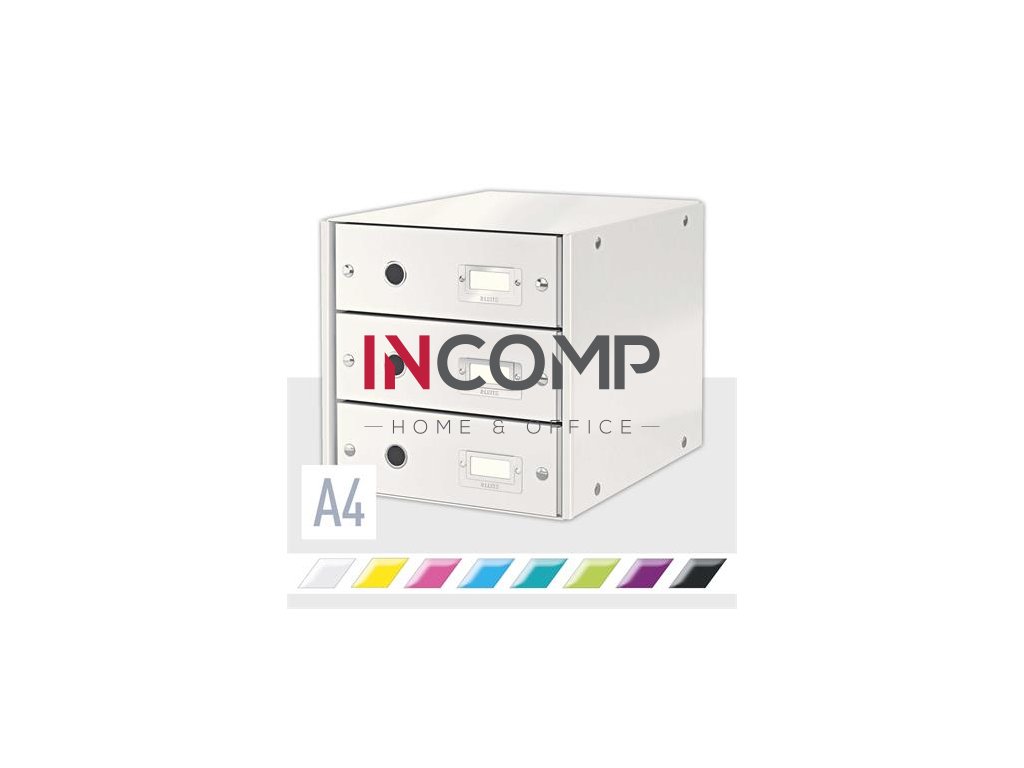 Zásuvkový box, polaminovaný kartón, 3 zásuvky, LEITZ "Click&Store", biela