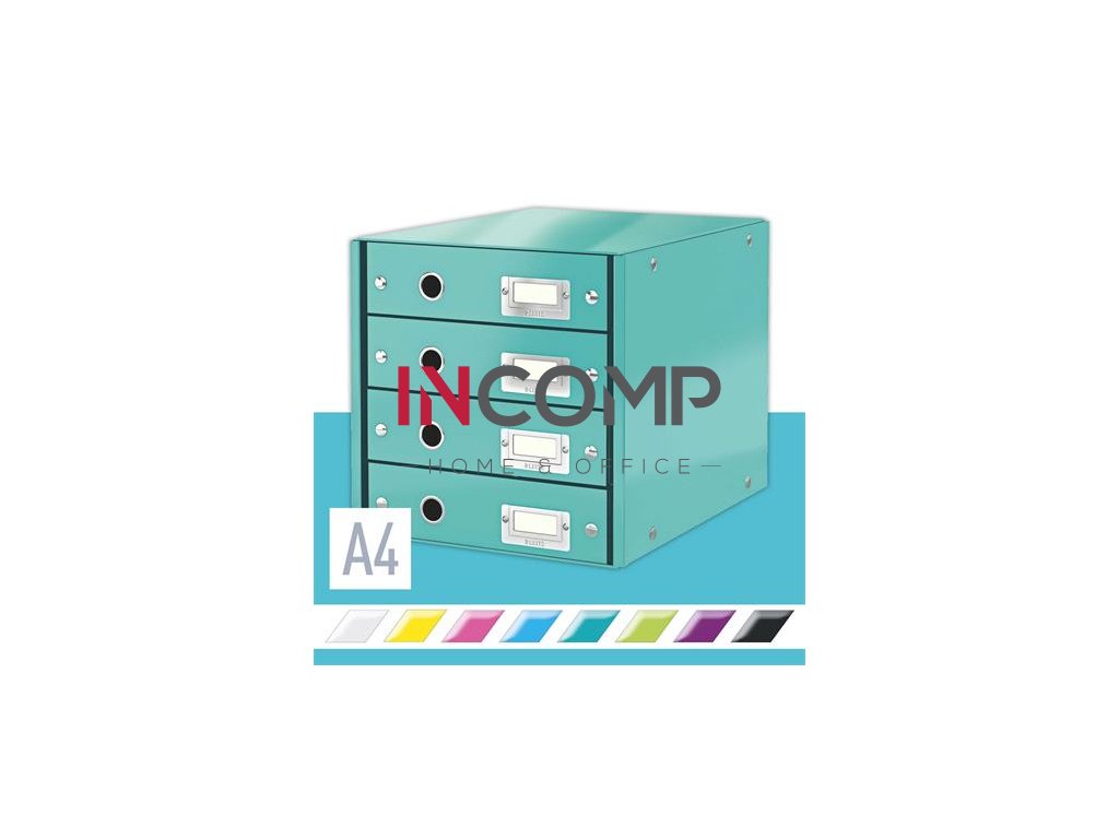 Zásuvkový box, polaminovaný kartón, 4 zásuvky, LEITZ "Click&Store", ľadovo modrá