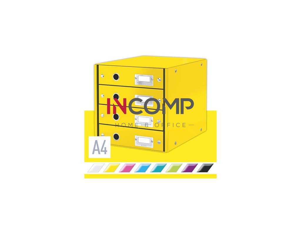 Zásuvkový box, polaminovaný kartón, 4 zásuvky, LEITZ "Click&Store", žltá