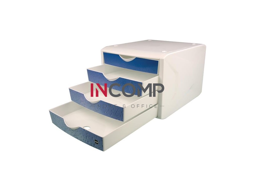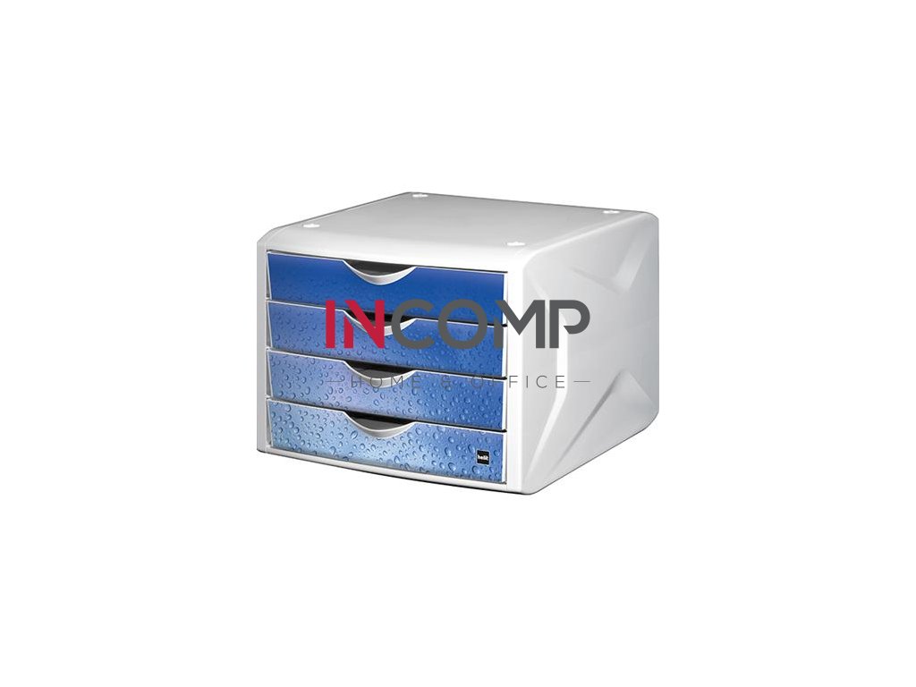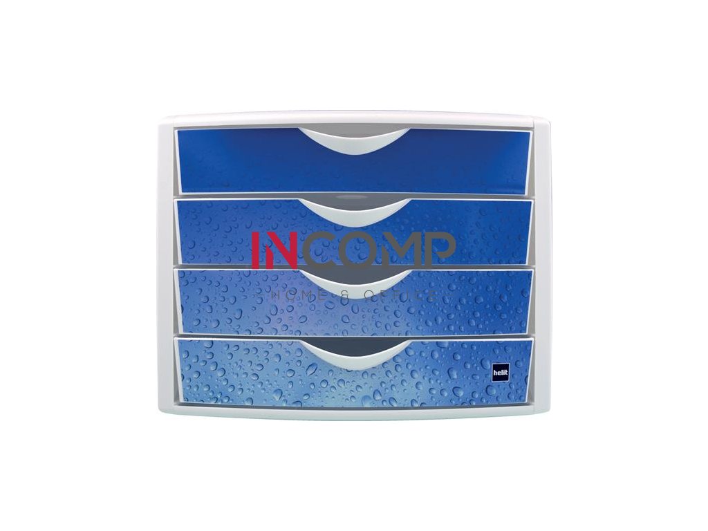 Zásuvkový box na dokumenty, plastový, 4 zásuvky, HELIT "Chameleon", biela-modrá