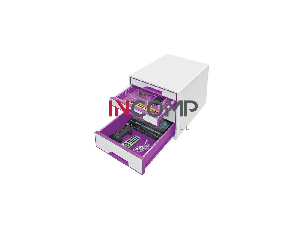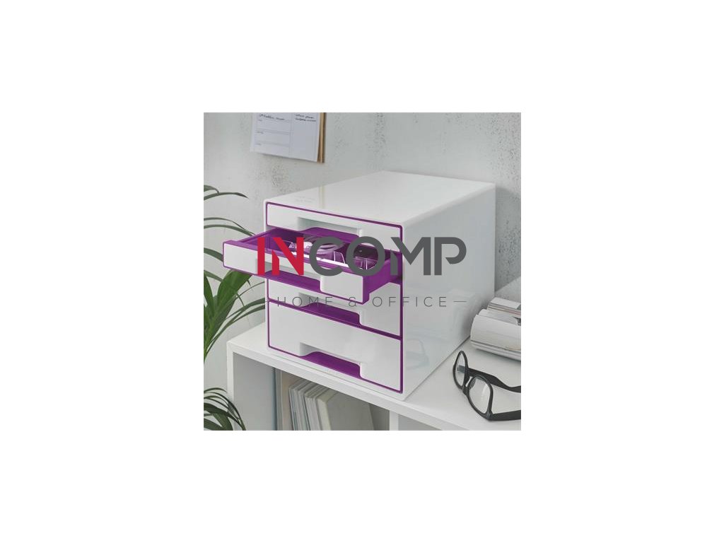 Zásuvkový box na dokumenty, plastový, 4 zásuvky, LEITZ "Wow Cube, biela/fialová