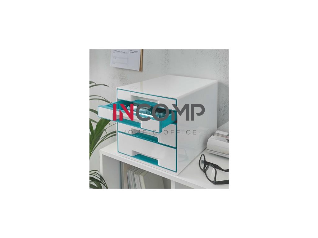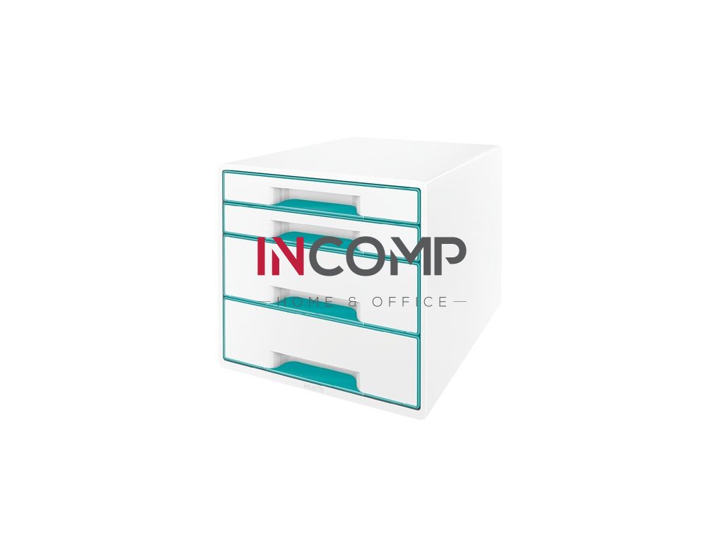 Zásuvkový box na dokumenty, plastový, 4 zásuvky, LEITZ "Wow Cube, biela/ľadovo modrá