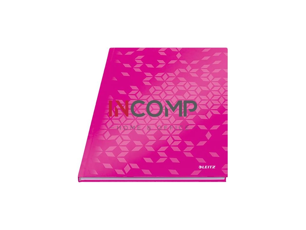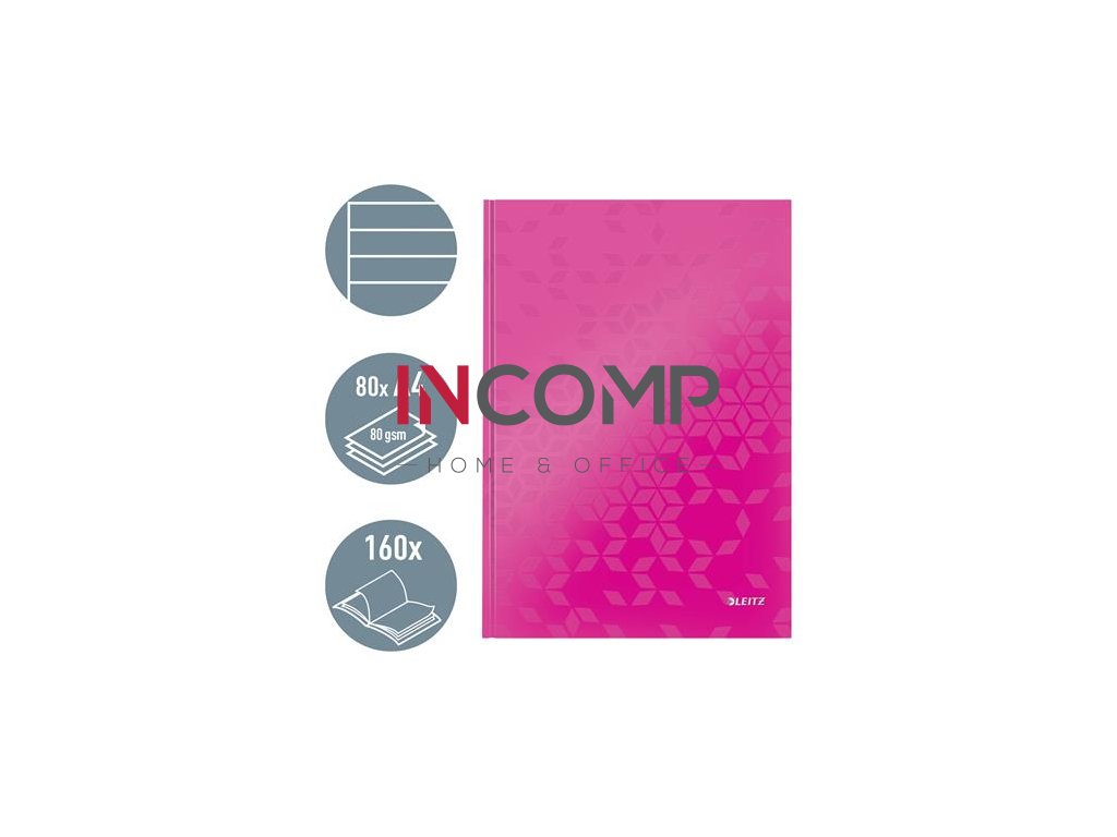 Záznamová kniha, A4, linajková, 80 listov, tvrdá obálka, LEITZ "Wow", ružová