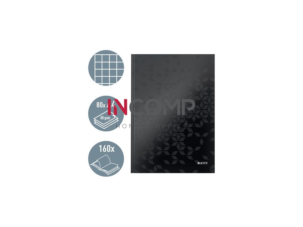 Záznamová kniha, A4, štvorčeková, 80 listov, tvrdá obálka, LEITZ "Wow", čierna