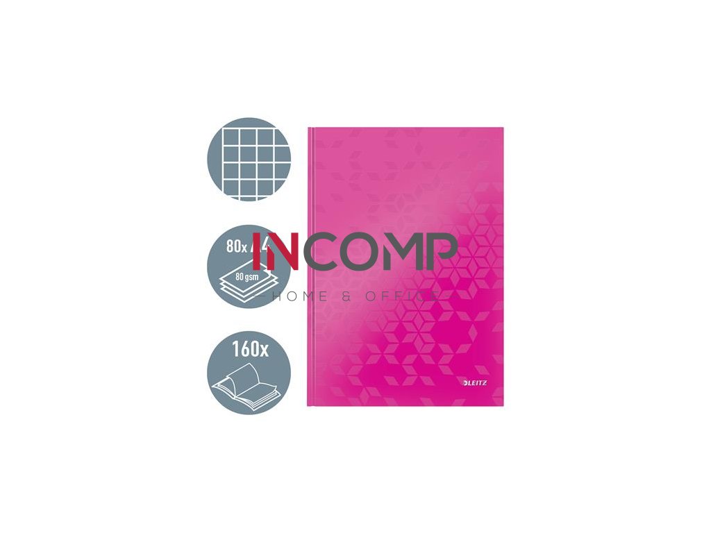 Záznamová kniha, A4, štvorčeková, 80 listov, tvrdá obálka, LEITZ "Wow", ružová