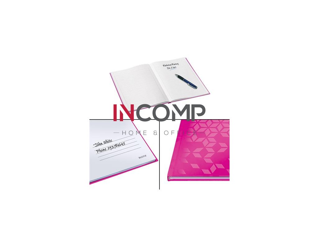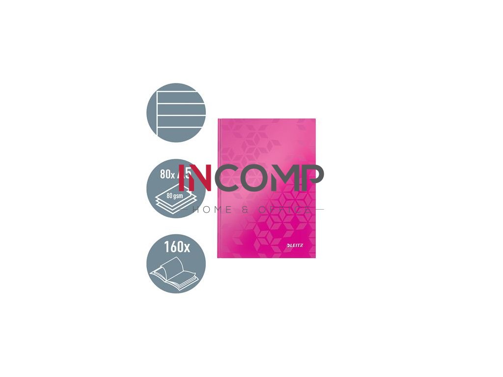Záznamová kniha, A5, linajková, 80 listov, tvrdá obálka, LEITZ "Wow", ružová
