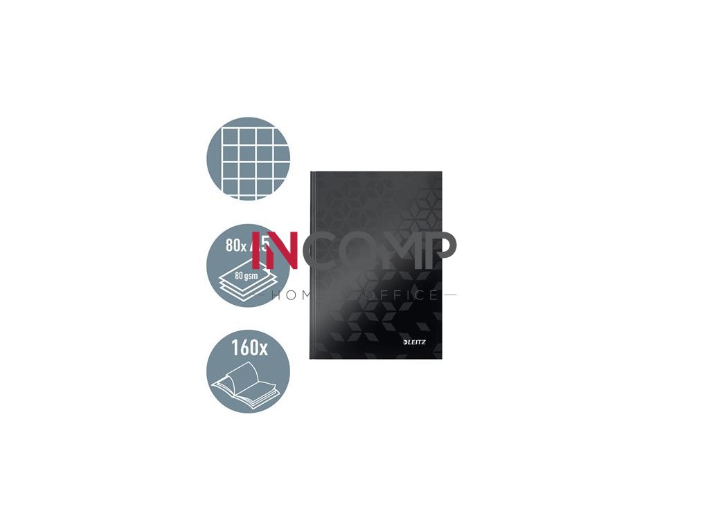 Záznamová kniha, A5, štvorčeková, 80 listov, tvrdá obálka, LEITZ "Wow", čierna