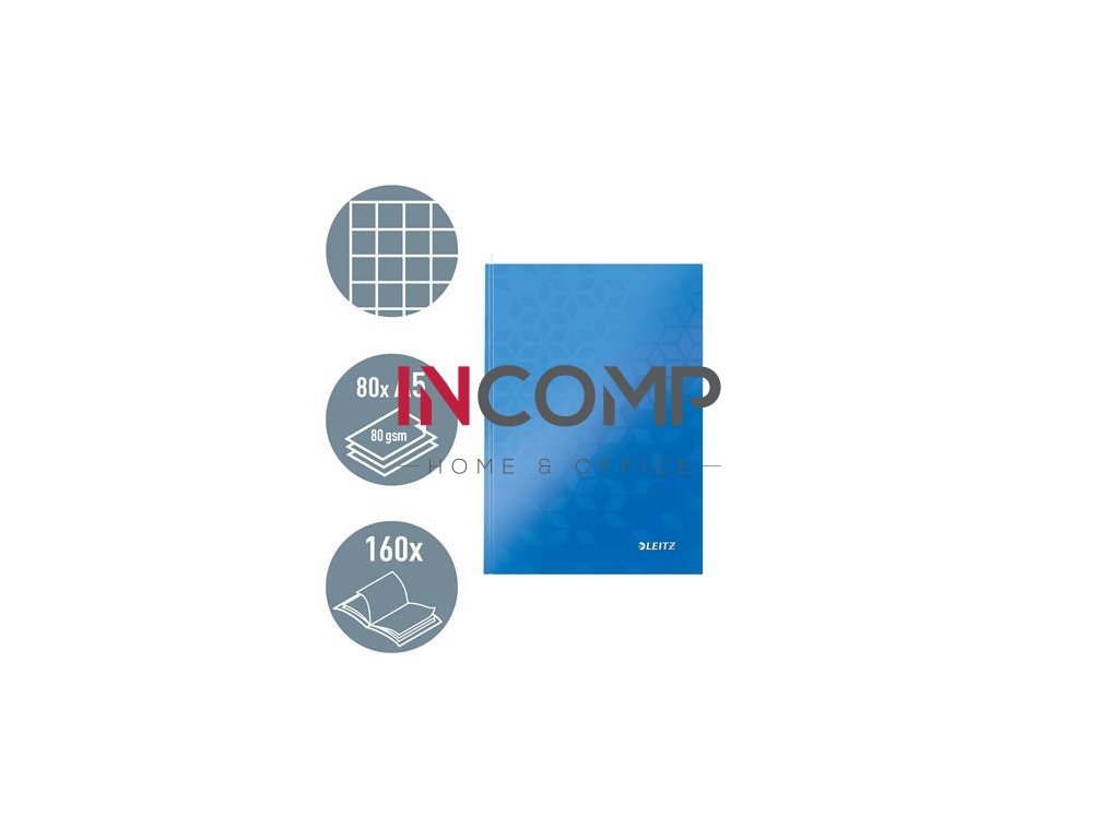 Záznamová kniha, A5, štvorčeková, 80 listov, tvrdá obálka, LEITZ "Wow", modrá
