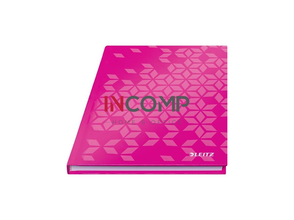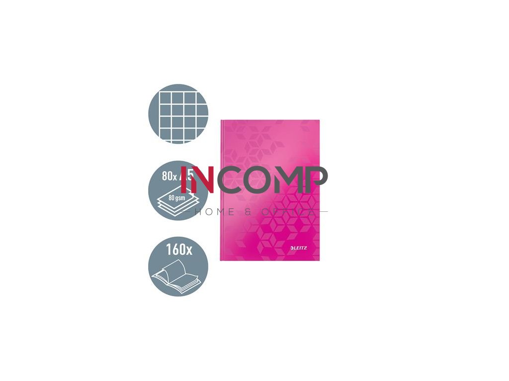 Záznamová kniha, A5, štvorčeková, 80 listov, tvrdá obálka, LEITZ "Wow", ružová