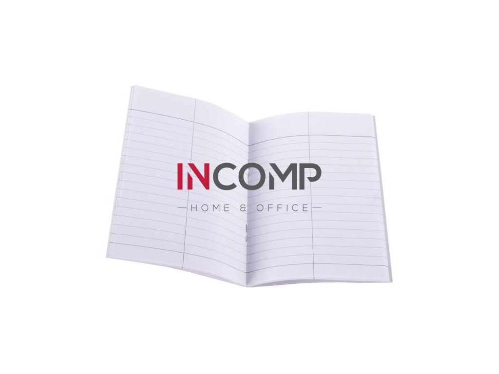 slovníkový zošit, linajkový, každá strana je rozdelená na dve polovice pre slovíčka