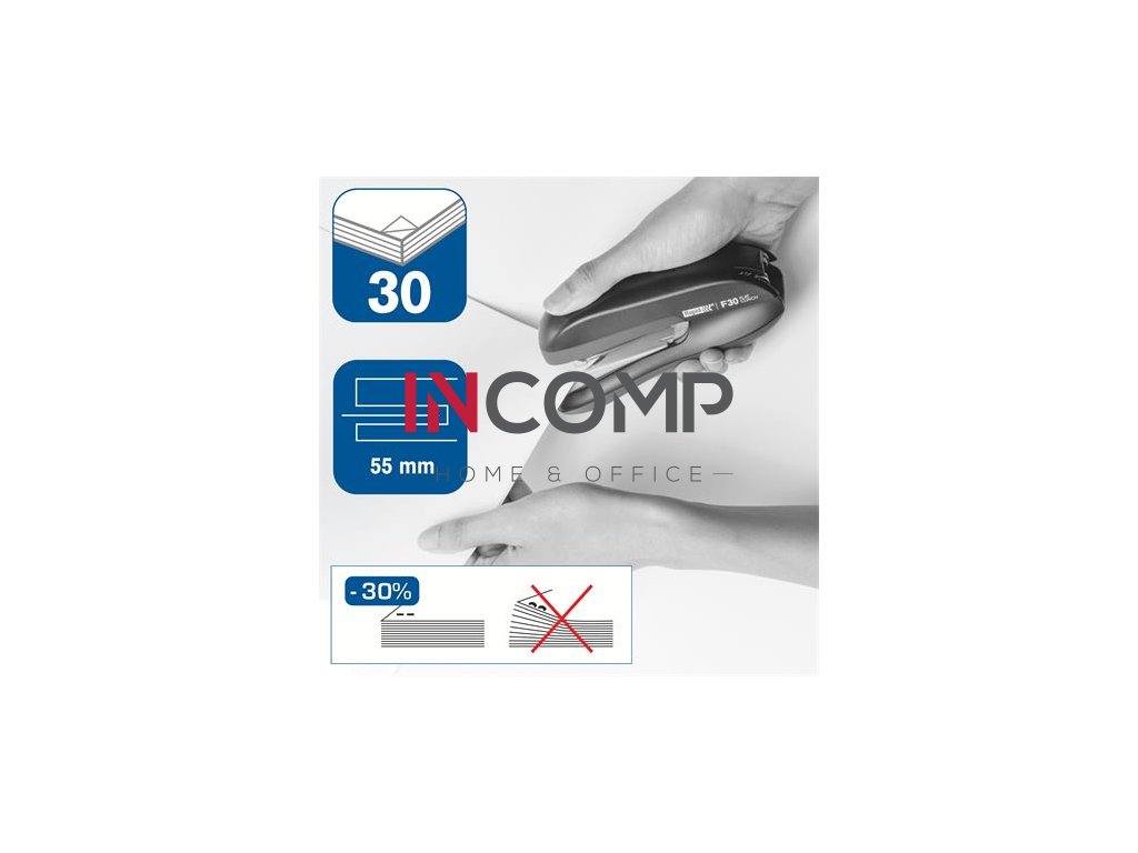 Ergonomická zošívačka s polovičným plnením spiniek a silnou oceľovou konštrukciou pre presné zošívanie. Vybavená technológiou plochého zošívania, ktorá šetrí miesto na ukladanie až o 30 %. Ideálne pre veľké aj malé kancelárie.