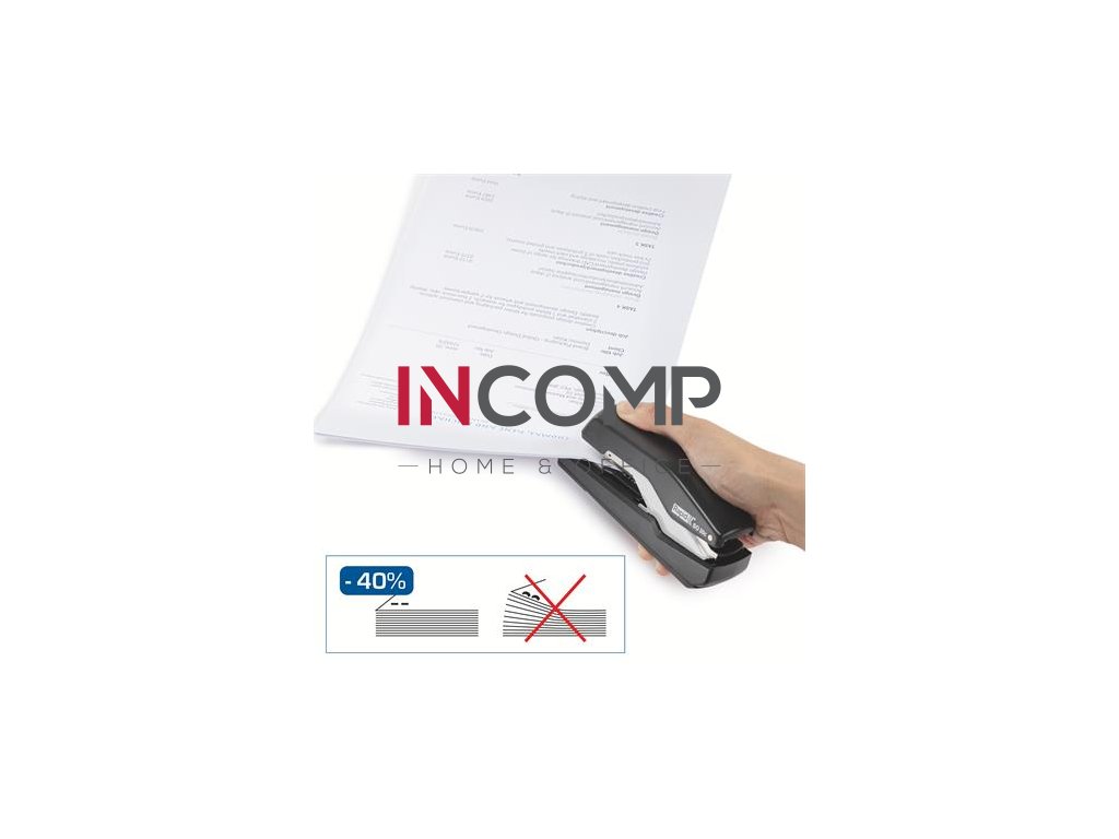 Revolučná zošívačka kompaktných rozmerov a s klasickou kapacitou zásobníka, vybavená patentovanou technológiou Omnipress™, ktorá umožňuje s minimom sily stlačiť zošívačku po celom jej tele a ľahko tak zošiť dokument na stole i v ruke. To všetko v kombinácii s technológiou super plochého zošívania SuperFlatClinch™ prinášajúcou 40 % úsporu miesta pri zakladaní takto zošitých dokumentov.