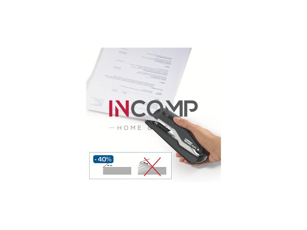 Revolučná veľkokapacitná zošívačka so zvýšenou kapacitou zásobníka, vybavená patentovanou technológiou Omnipress™, ktorá umožňuje s minimom sily stlačiť zošívačku po celom jej tele a ľahko tak zošiť dokument na stole i v ruke. To všetko v kombinácii s technológiou super plochého zošívania SuperFlatClinch™ prinášajúcou 40 % úsporu miesta pri zakladaní takto zošitých dokumentov.