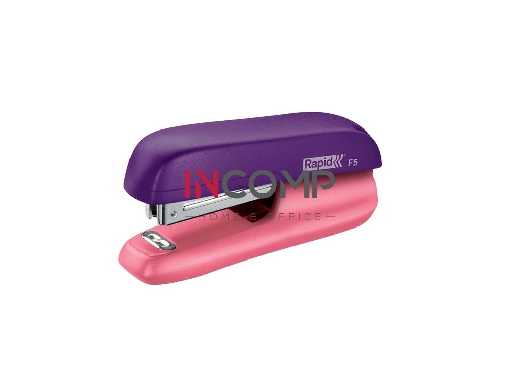 Zošívačka, dierovačka, rozošívačka, sada, 10 listov, RAPID "F5 Mini", fialová/broskyňová