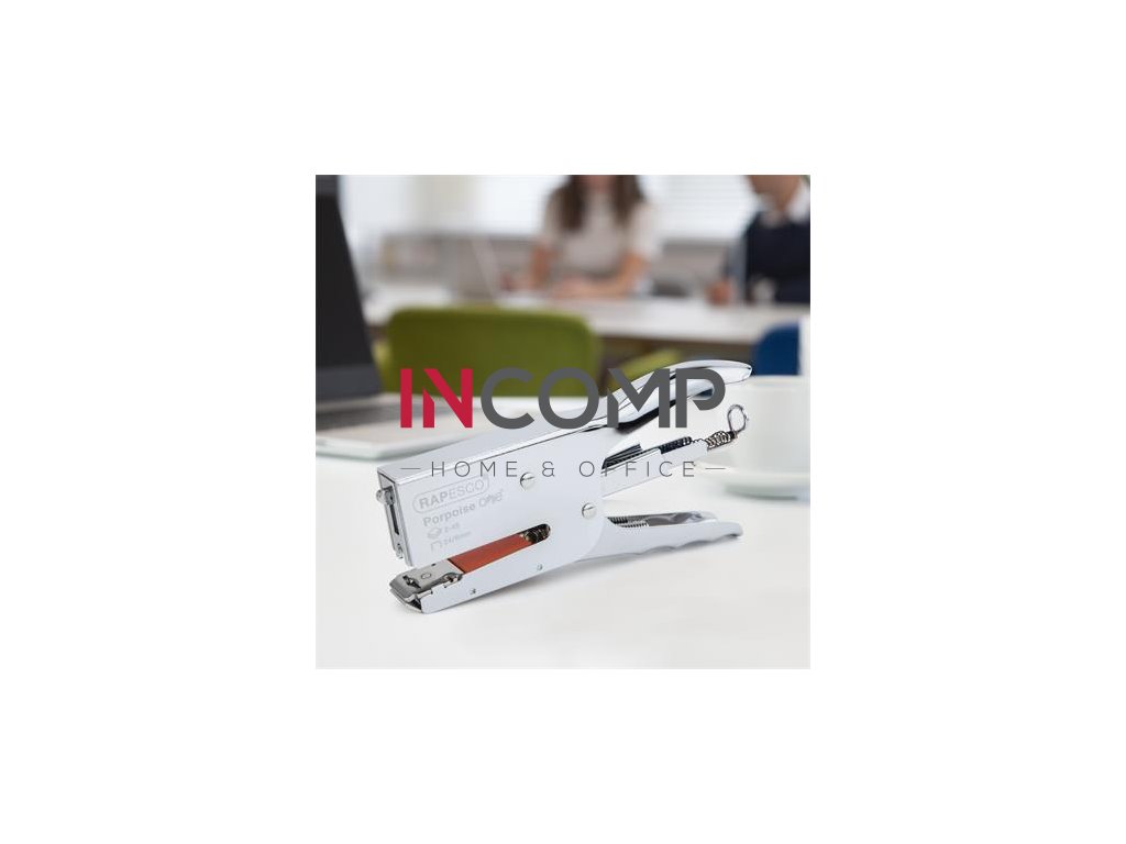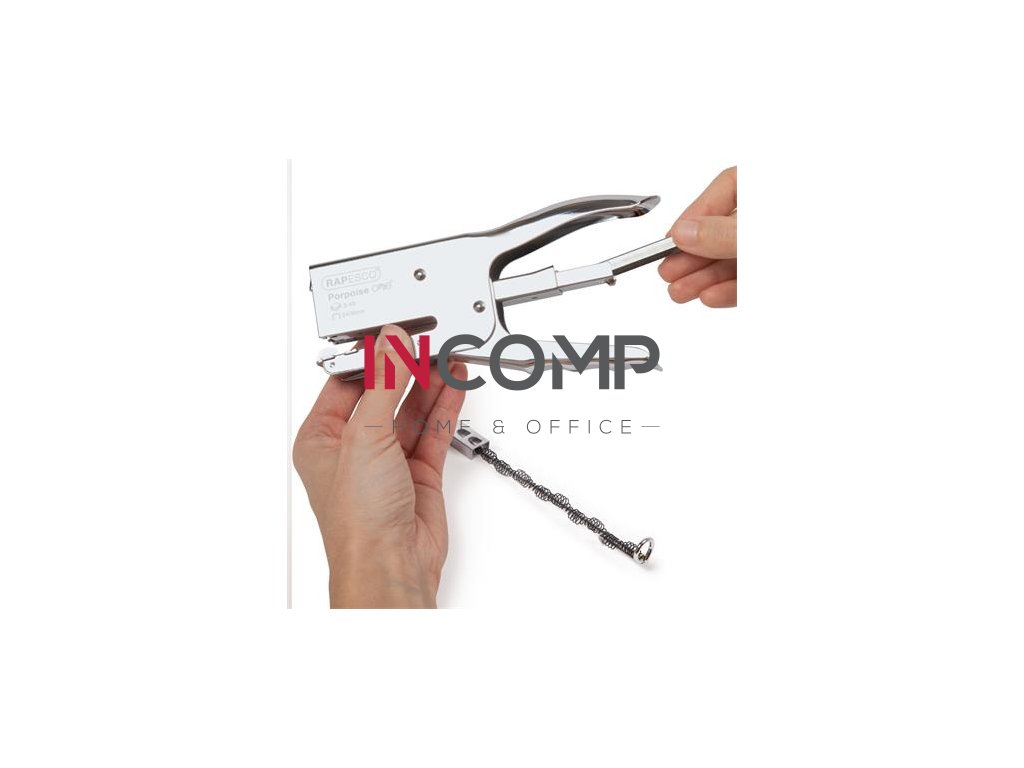 Zošívačka Rapesco Porpoise ONE – ideálna na rýchle zošívanie aj balenie. -vhodná na použitie na poštách, v gastronómii, skladoch a ďalších prevádzkach -ručná zošívačka -odolné kovové telo a vnútorná konštrukcia -plnenie zozadu – dopĺňanie stlačením alebo vyklopením zadnej pružiny -kapacita: 2–45 listov (80 g/m²) -kompatibilné so spinkami 24/8 mm -darček: 1000 ks spiniek Rapesco 24/8 mm -ergonomický dizajn -rozmery: 175 x 22 x 92 mm