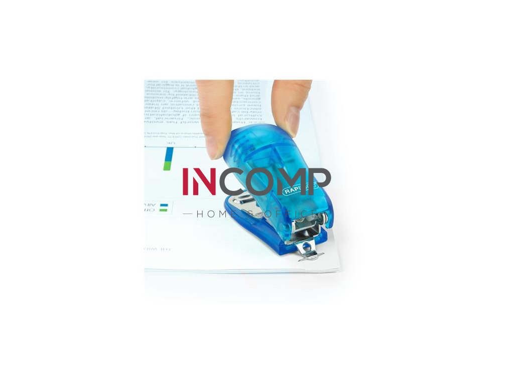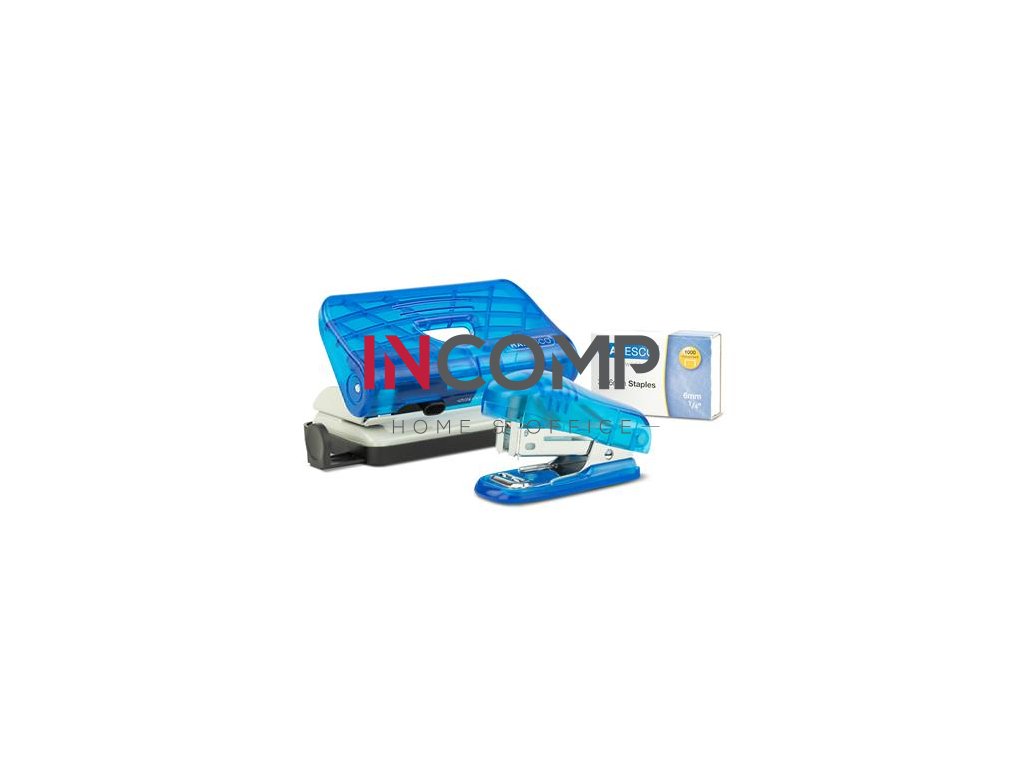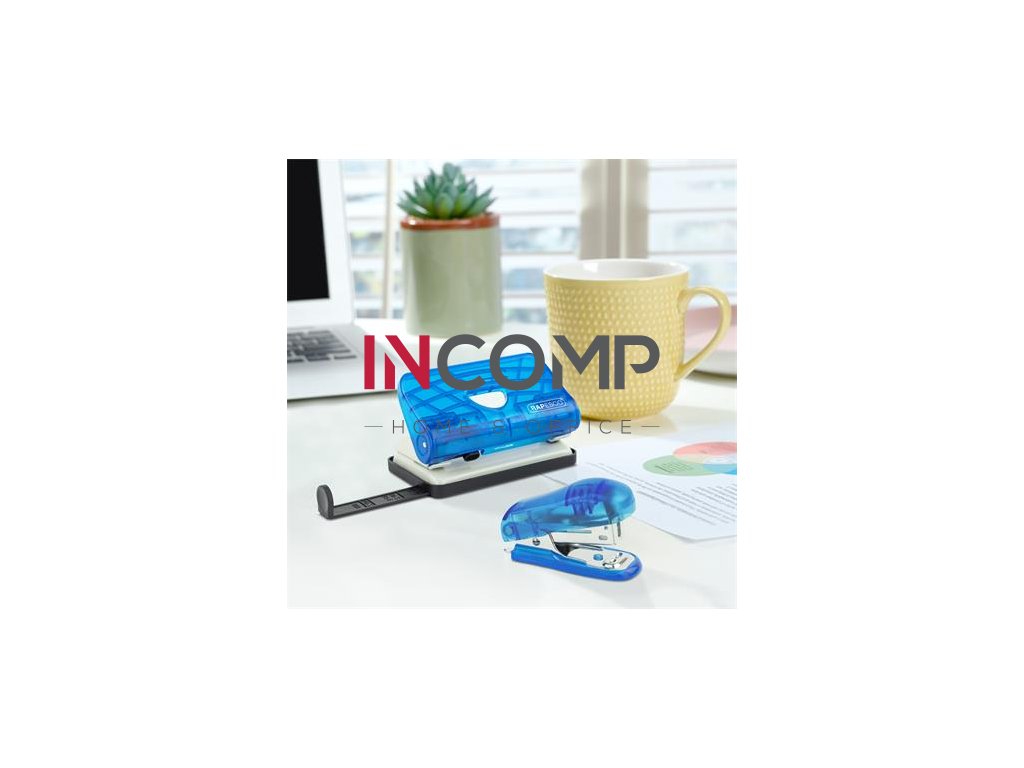Zošívačka a dierovačka, set, 24/6, 26/6, 12 listov, RAPESCO, priehľadná modrá, so spinkami
